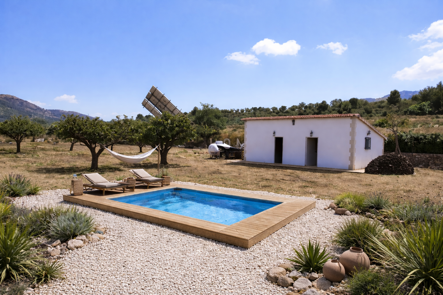 - Private swimming pool (5.5m × 2.8m)
